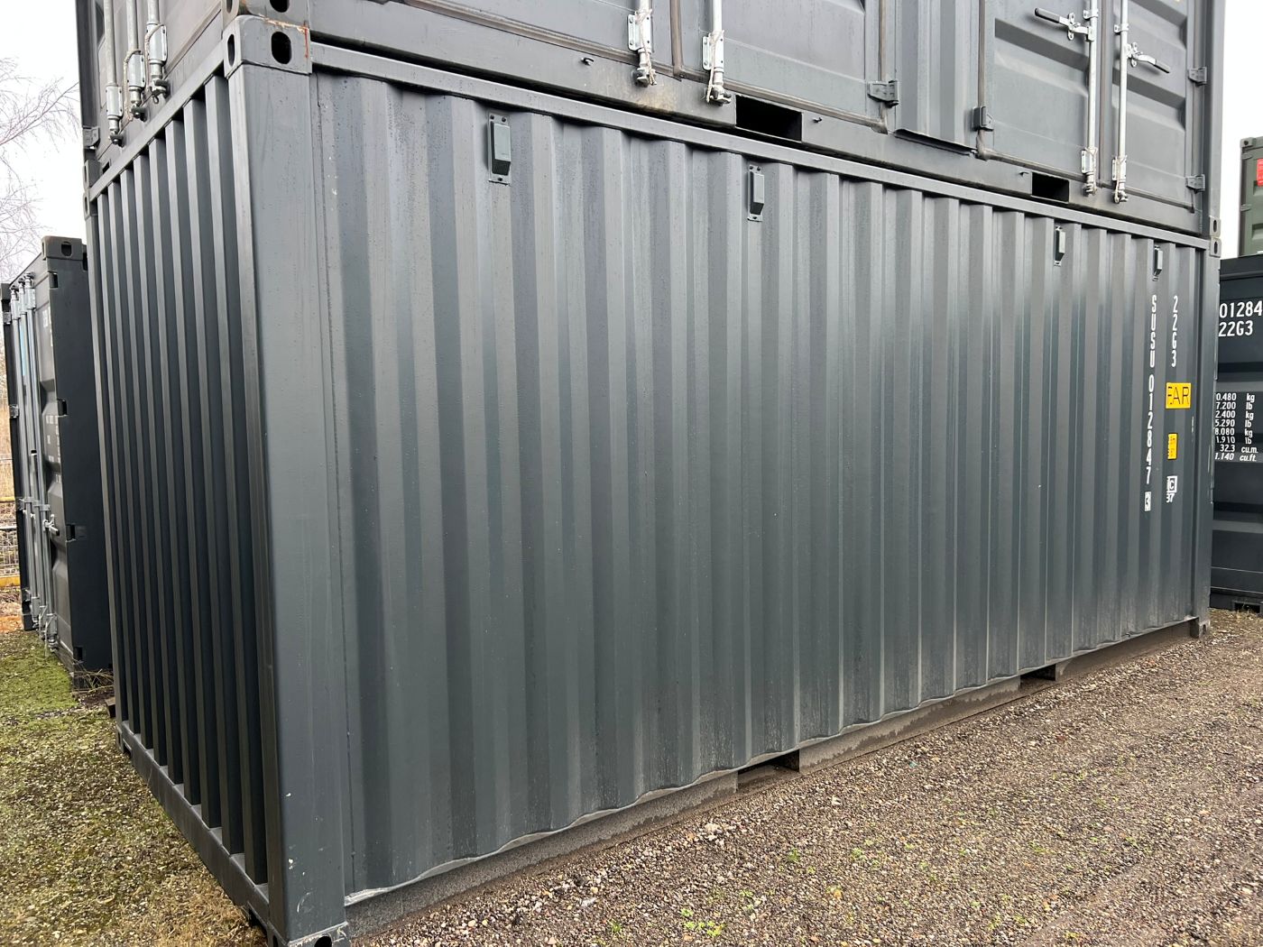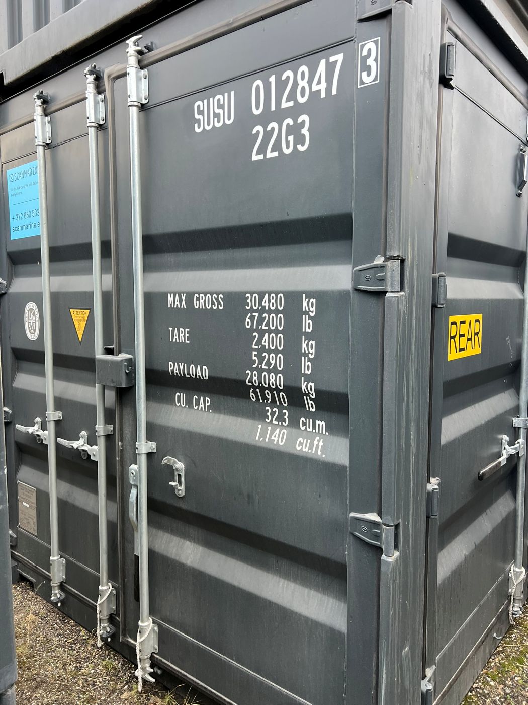 *To reduce the cost of the container, we have used it once for transporting goods from China to Estonia. Such containers are referred to as “one way with cargo” or “one trip with cargo” containers. The container is in nearly new condition. Containers damaged during transport are sold at a discounted price.