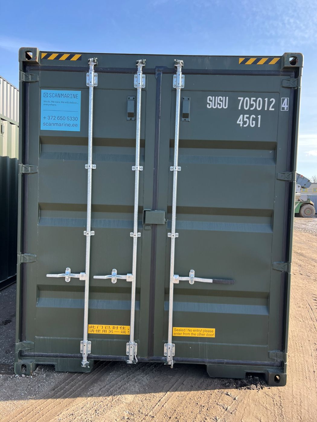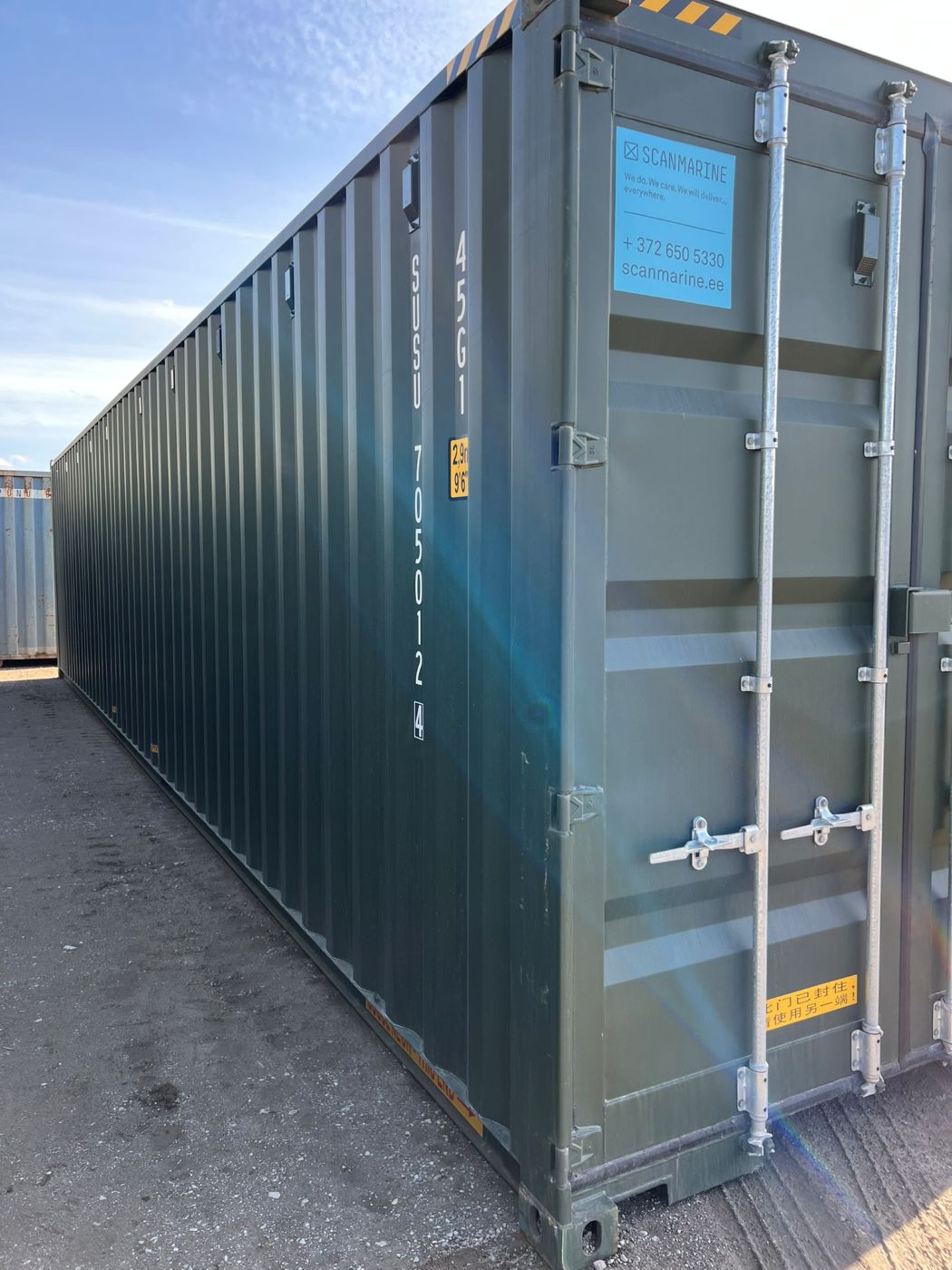 *To reduce the cost of the container, we have used it once for transporting goods from China to Estonia. Such containers are referred to as “one way with cargo” or “one trip with cargo” containers. The container is in nearly new condition. Containers damaged during transport are sold at a discounted price.