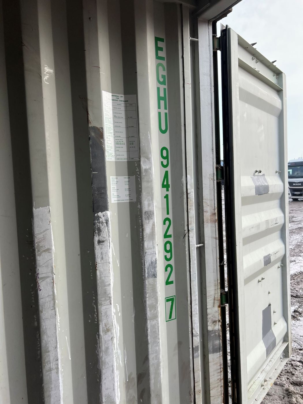 – Konteineril on lagi ja põrand terved / veekindel seisukord.